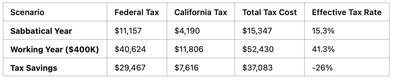 Total Tax Cost in Sabbatical Year: $15,347