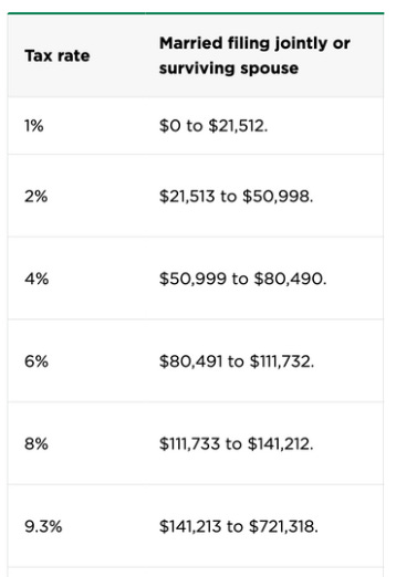 Applying the California tax brackets: