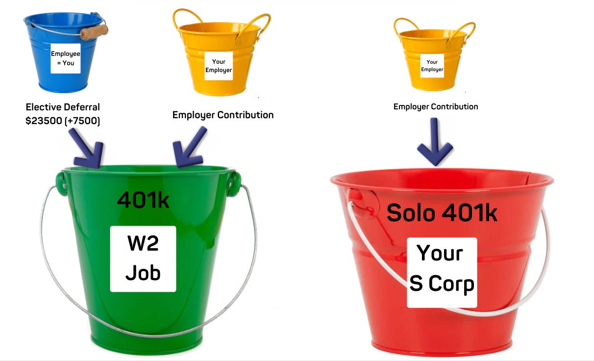 Both worked for a large medical group (W-2 employment) and participated in their employer-sponsored 401(k) plans. Both were 25% shareholders of an S corporation (one dermatology practice and one orthopedic practice) and had a solo 401(k) through their S corporations. Since each employer can have its own 401(k), each physician had two 401(k) plans (one traditional and one solo 401(k), totaling four 401(k) plans between them.